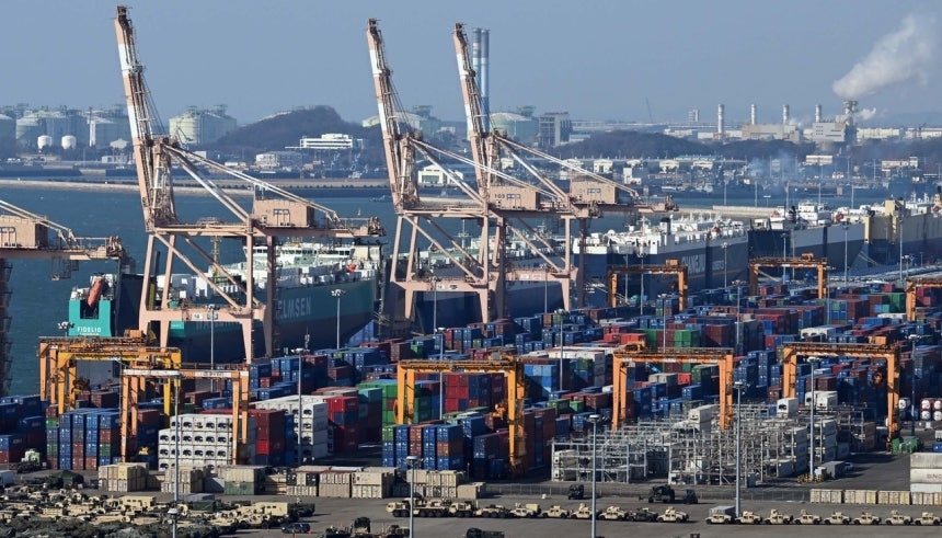 | 경기 평택시 평택항에 수출을 앞둔 컨테이너가 쌓여있는 모습. [헤럴드경제DB] |