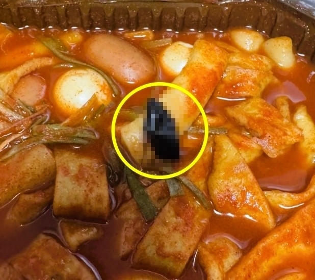 공개된 사진에는 배달 용기에 담긴 떡볶이에 바퀴벌레로 추정되는 이물질이 담겼다.