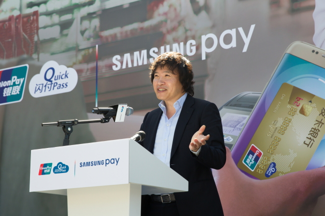 | SAMSUNG PAY HITS CHINESE MARKET — Samsung Electronics said Tuesday that it has rolled out mobile payment solution Samsung Pay, currently available on premium Galaxy handsets including Galaxy S6 and Note 5, in the Chinese market. The mobile payment solution supports credit and debit cards issued by nine Chinese banks including China CITIC Bank, China Construction Bank, and China Everbright Bank. (Samsung Electronics) |